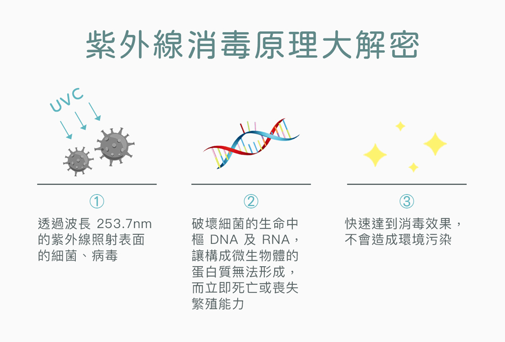 -安全設計,紫外線燈在消毒過程中旋轉 90 度後自動關閉