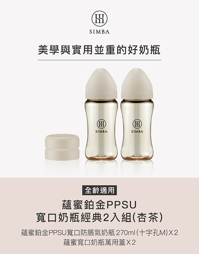 內容物:270mlx2入(搭配寬口十字M奶嘴) + 萬用蓋x2入