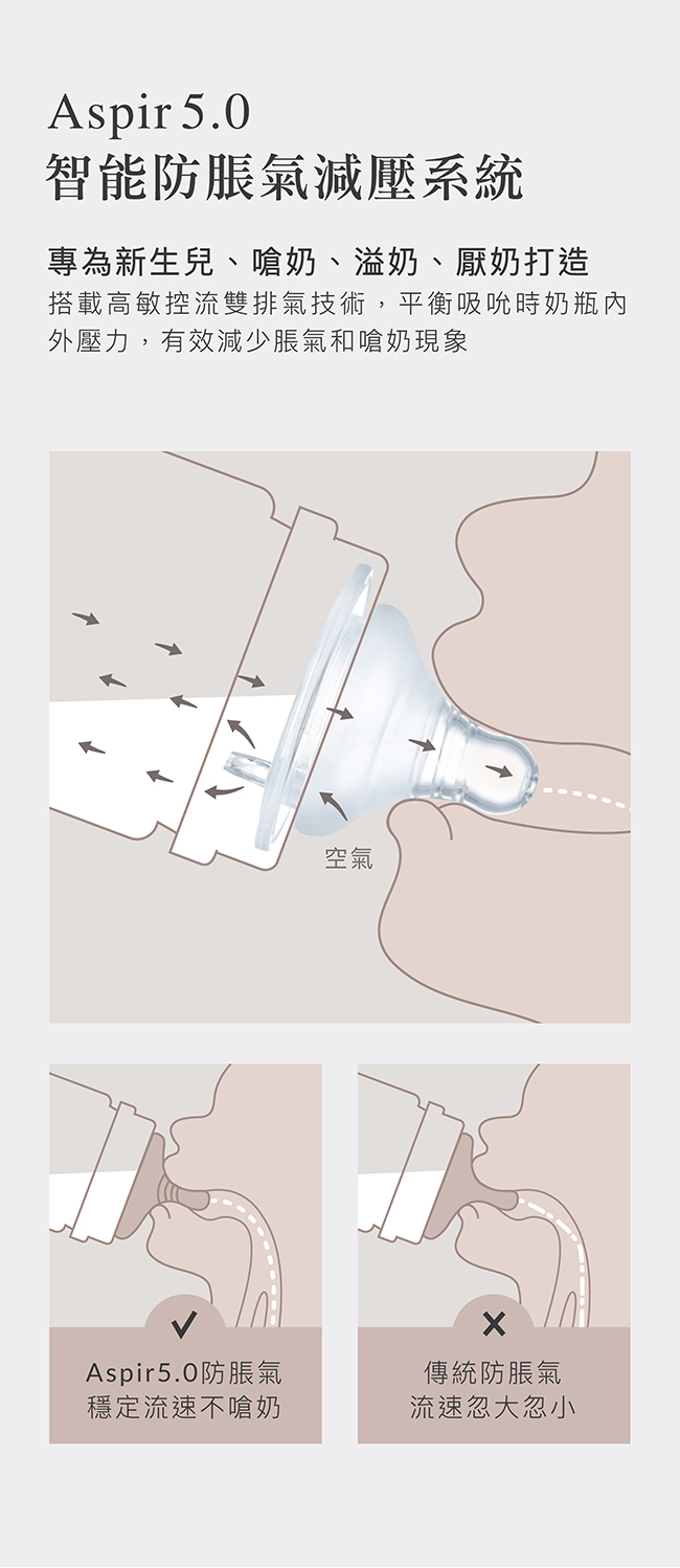 -Aspir 5.0智能防脹氣減壓系統,防嗆奶、防溢奶、防脹氣