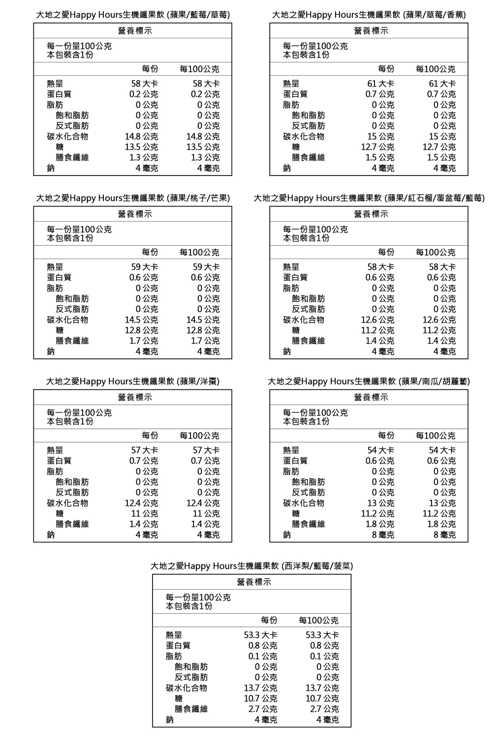 台灣 大地之愛 Happy Hours 生機纖果飲