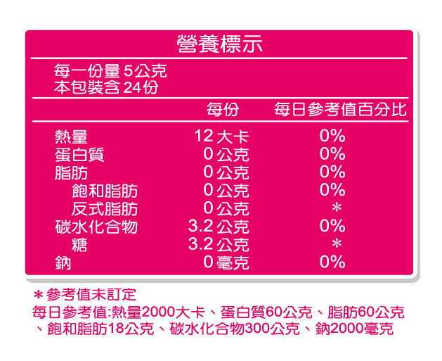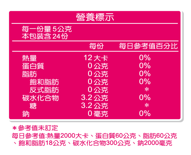 • 每次5匙(或1包),請注入溫熱開水約50-100cc,調勻後即可飲用,每日建議沖泡3~4次。 (濃淡可依照個人口感喜好沖泡,可視情形增加食用次數)