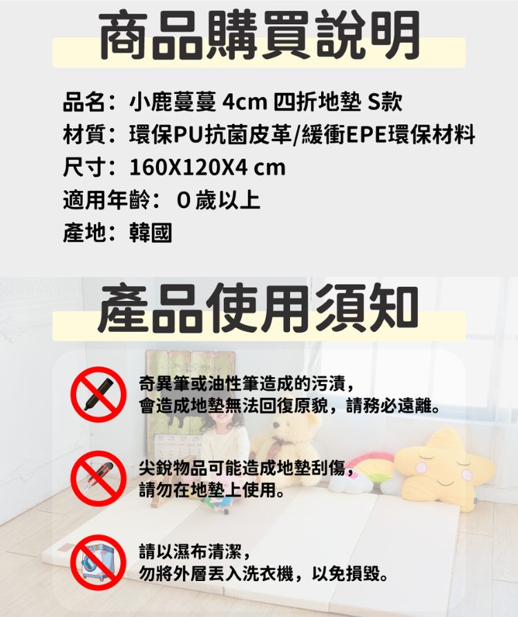 • 八層PE材質,超厚4cm吸音防震,避免孩童因跌倒而受傷