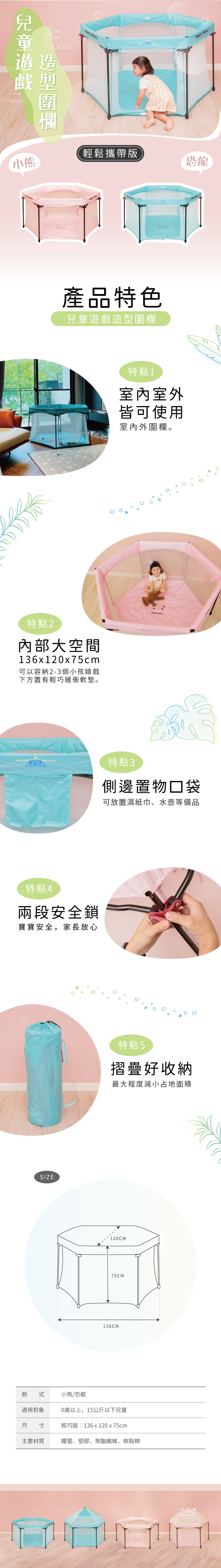 -可愛動物設計圍欄,摺疊好收納。