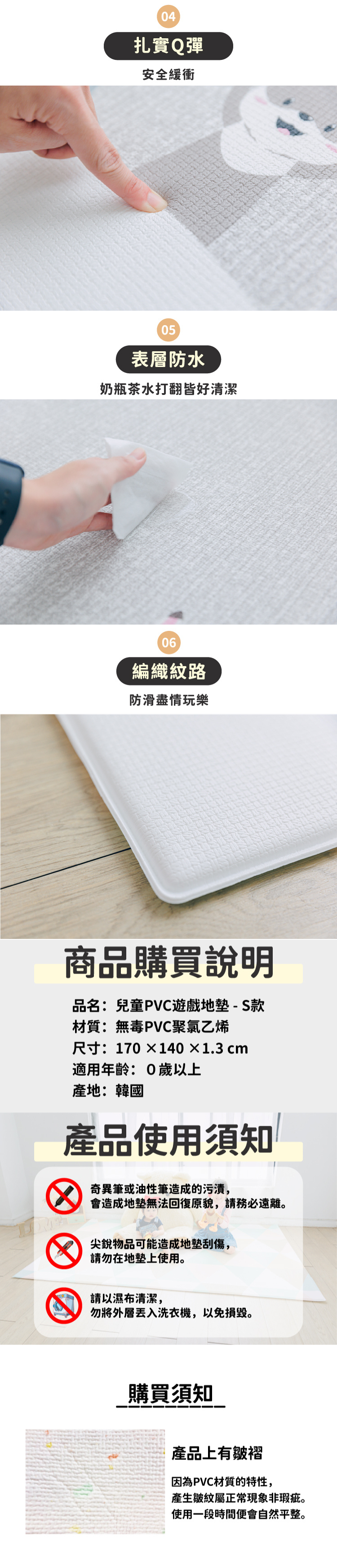 2. 切勿使用尖銳物穿刺地墊。