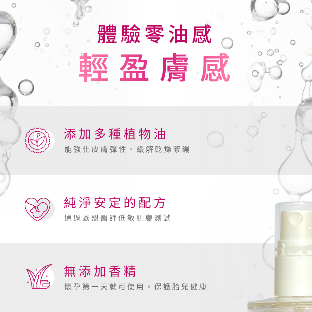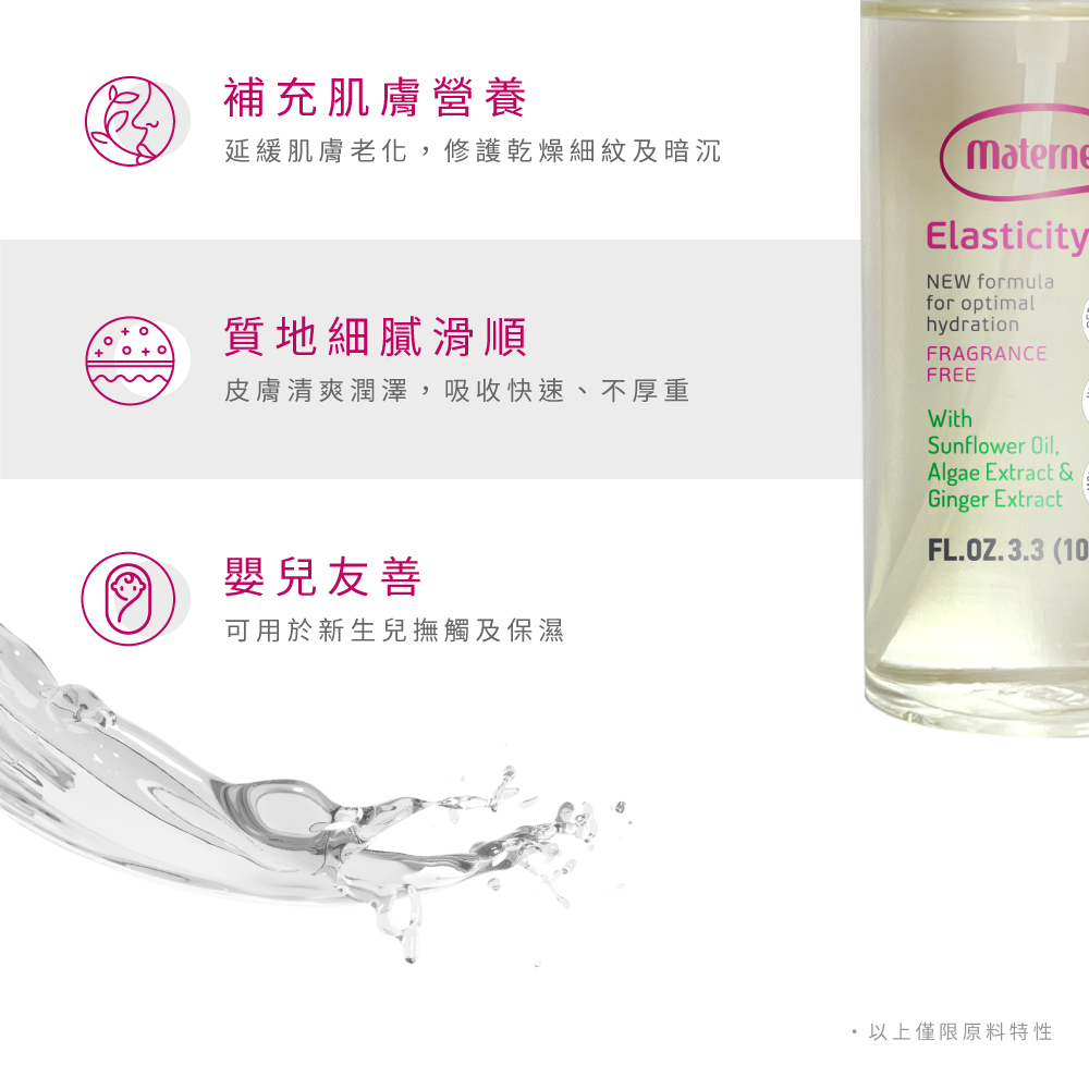 容易吸收、不黏膩,有保濕、延緩肌膚老化的效果,並可紓緩肌膚緊繃感。