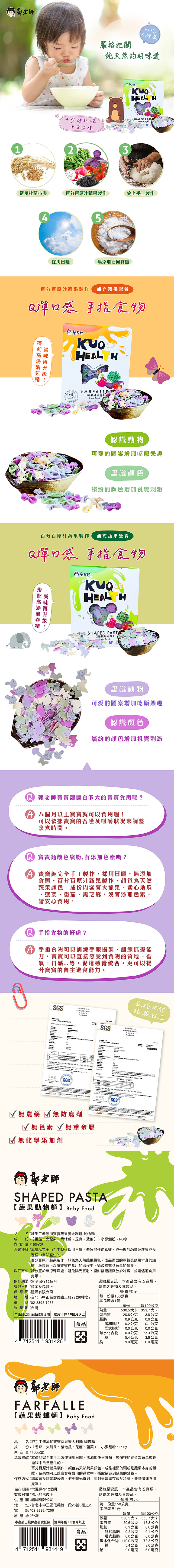 台灣 郭老師 寶寶蔬果蝴蝶麵/動物麵 150g/盒