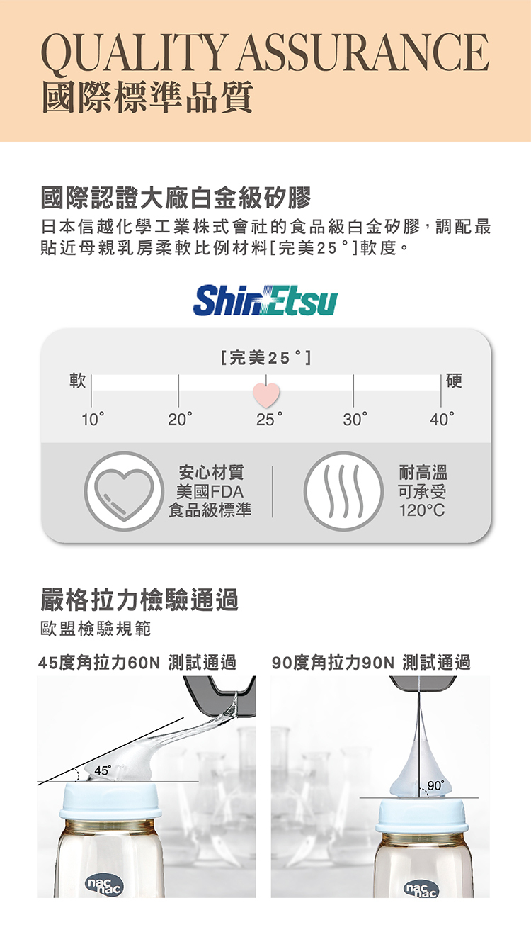 奶嘴:食品級矽膠(-40 ℃~+120 ℃)