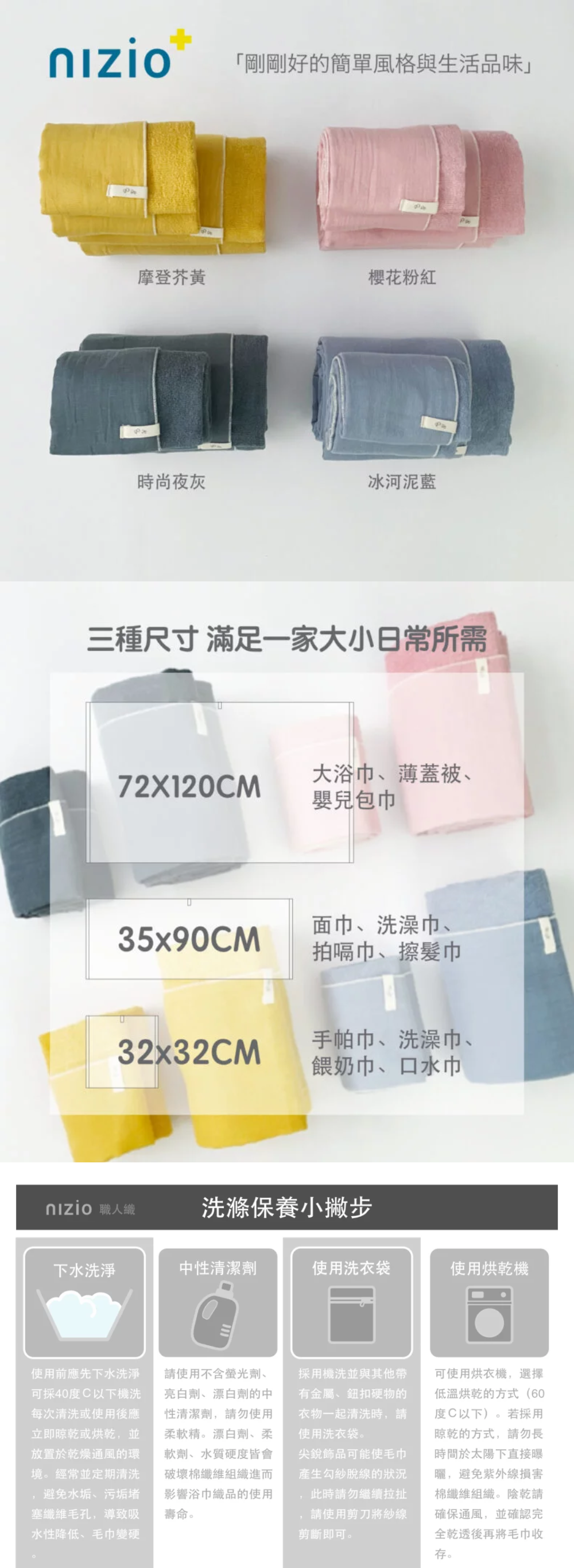 • 紗巾|親膚透氣;毛圈|吸水快乾!
