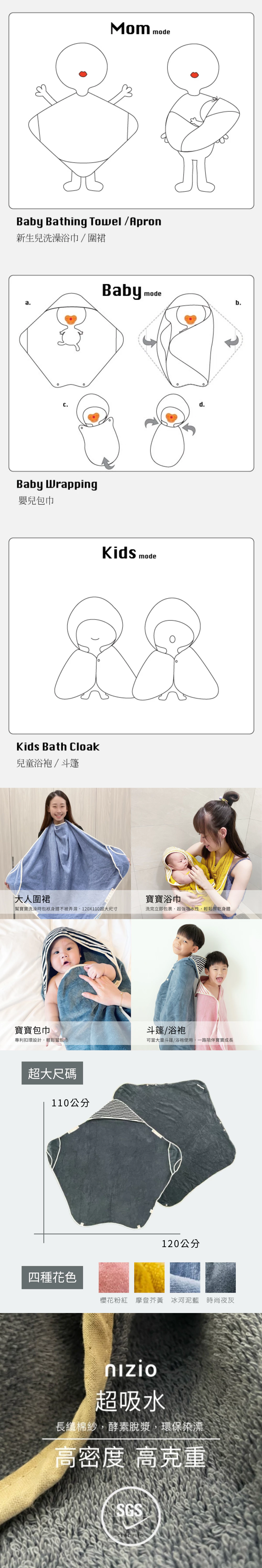 -四大功能一次滿足:圍裙、浴巾、嬰兒包巾、兒童浴袍