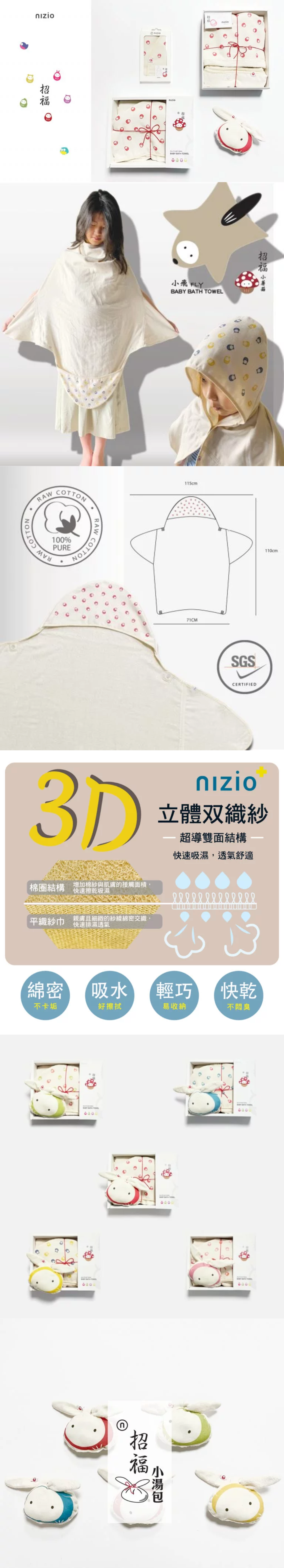 -小飛浴巾與nizio超人氣小蘑菇浴巾一樣可從出生時的新生兒洗澡圍裙、包巾變化到長大時的斗篷浴巾。