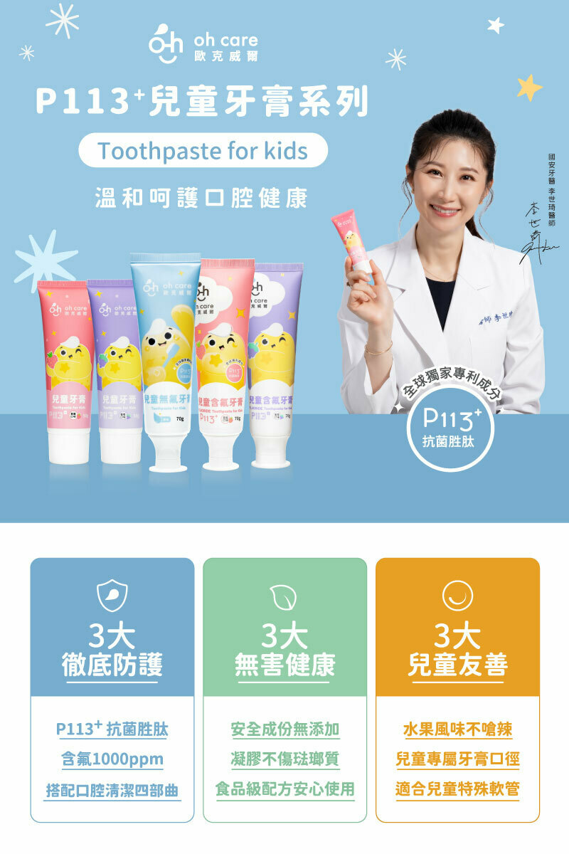 oh care 歐克威爾 兒童無氟牙膏 -多款可選