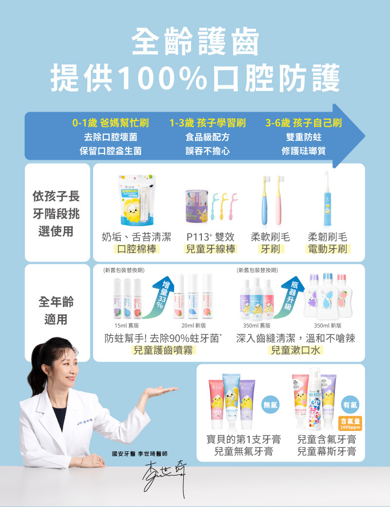 用途:配合正確刷牙習慣,幫助預防兒童蛀牙、強化牙齒琺瑯質。