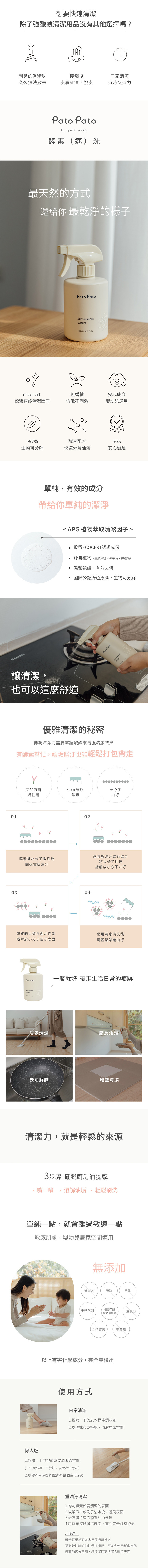 成分:酵素、烷基聚葡萄苷、檸檬酸鈉、植物萃取低泡滲透劑、椰子油萃取的衍生物