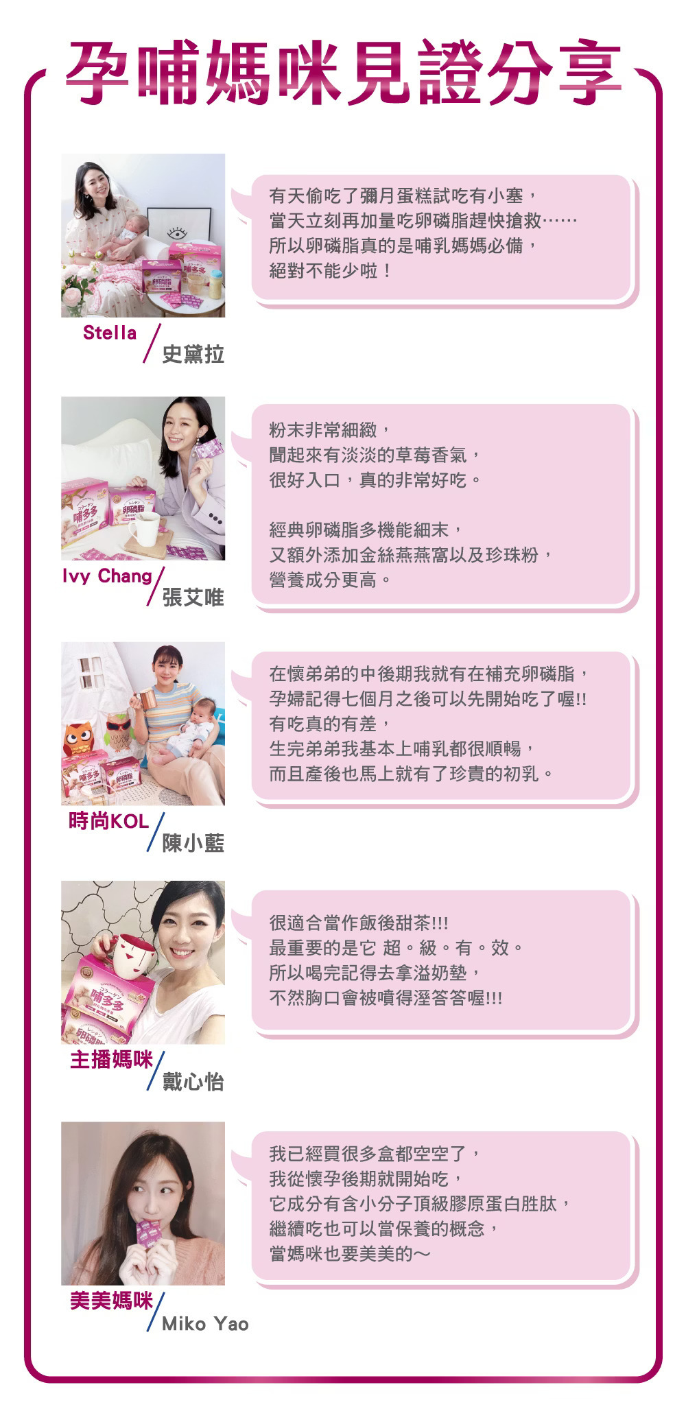 -經典配方,全新添加德國小分子頂級膠原蛋白胜肽,含芽孢型乳酸菌、金絲燕燕窩、微奈米真珠粉,甜甜草莓口味口感極佳,讓哺乳好順利!