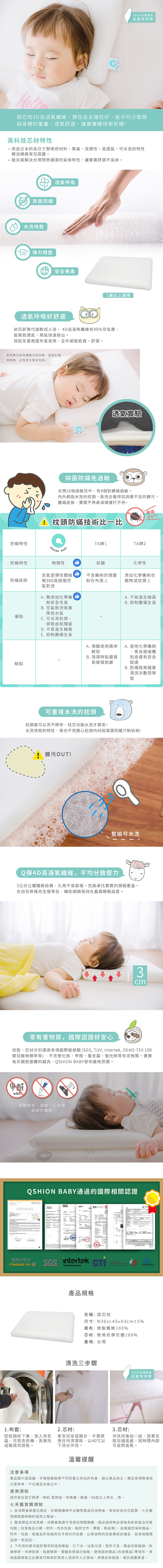 甜芯枕4D高涵氧纖維,彈性佳支撐性好,能平均分散頭與身體的重量,透氣舒適,讓寶寶睡得更安穩!