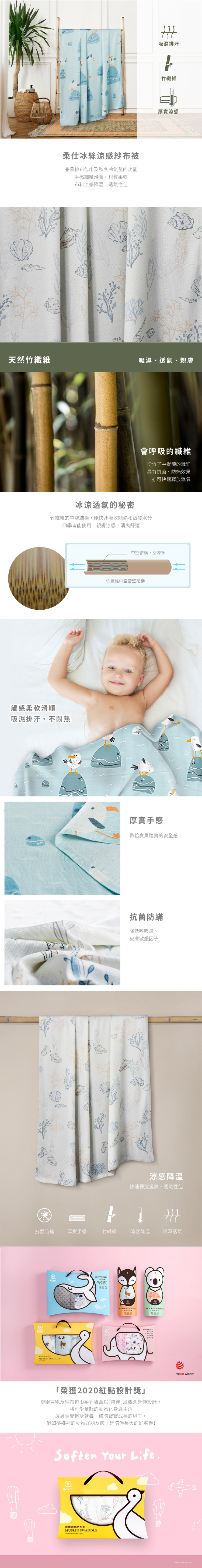 -冰絲涼感紗布被兼具紗布包巾及秋冬冷氣毯的功能。