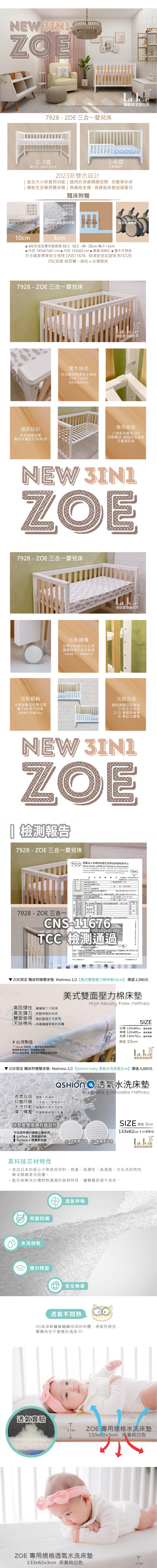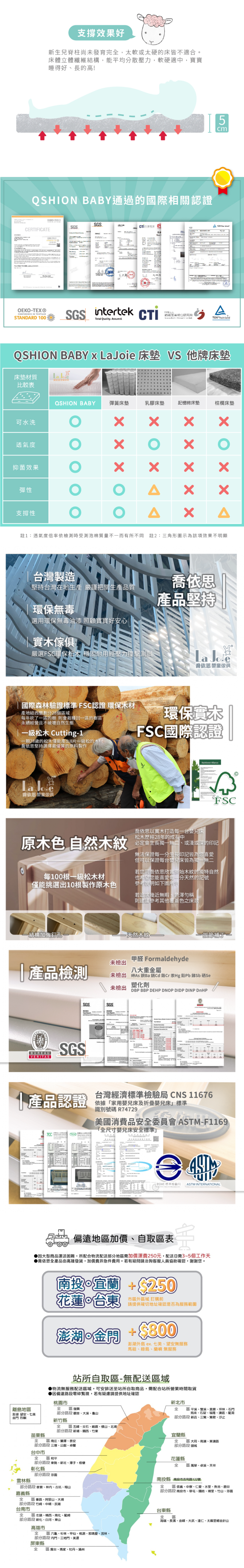 配件:美式雙面壓力棉床墊10cm、QSHION透氣水洗嬰兒床墊3cm、兒童小護欄、剎車腳輪