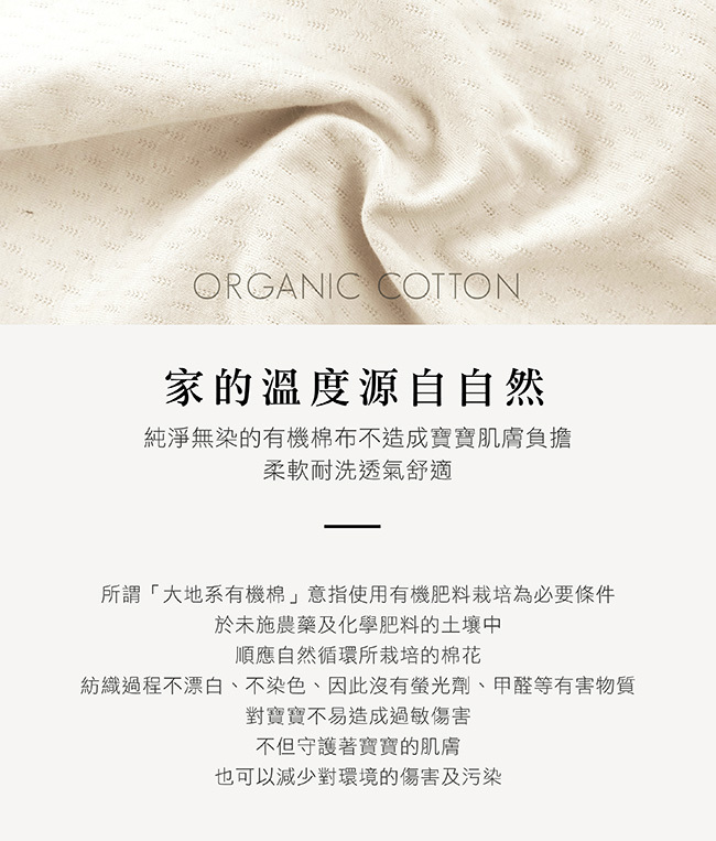 • 100%天然有機棉布、通過荷蘭CU國際有機認證。