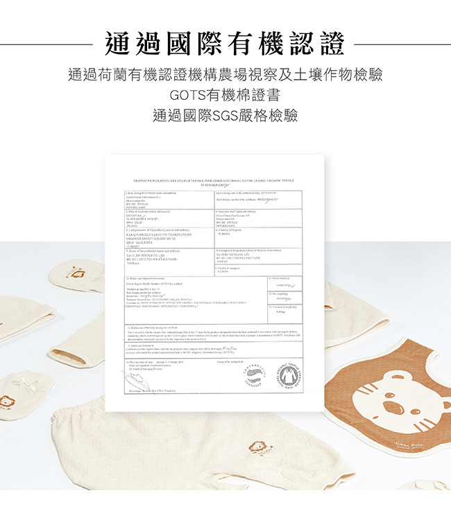 -100%天然有機棉布、通過荷蘭CU國際有機認證。