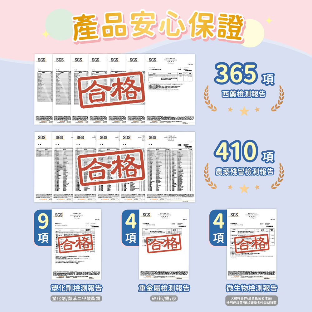 ✔SGS認證:365項西藥、410項農藥殘留等檢驗合格