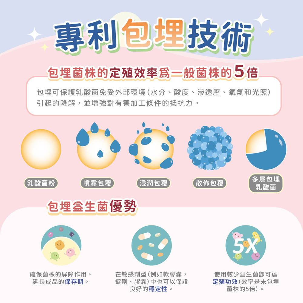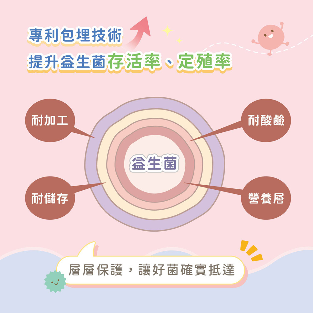 ★專利多層包埋技術菌種:定殖長駐、完整保護