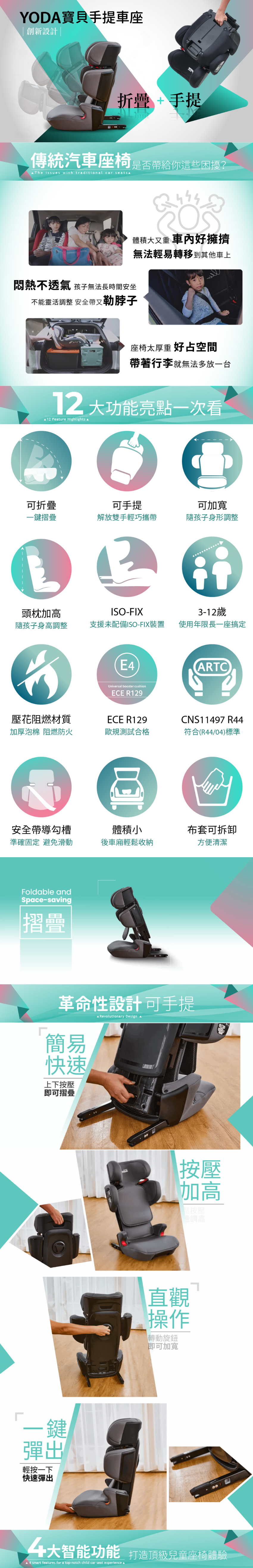 YODA 3-12歲 寶貝手提摺疊汽座