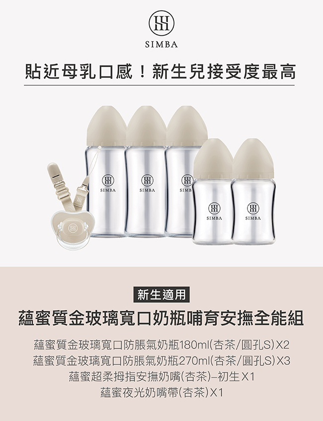 小獅王辛巴 蘊蜜質金玻璃寬口奶瓶哺育安撫全能組