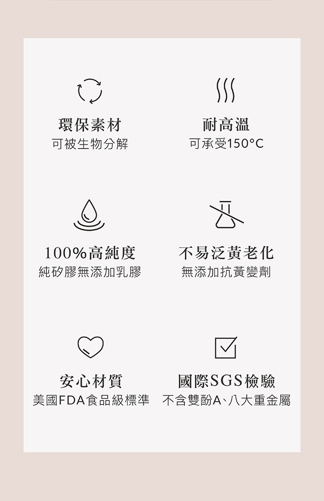 材質:食品級白金矽膠(-40℃~+150℃)