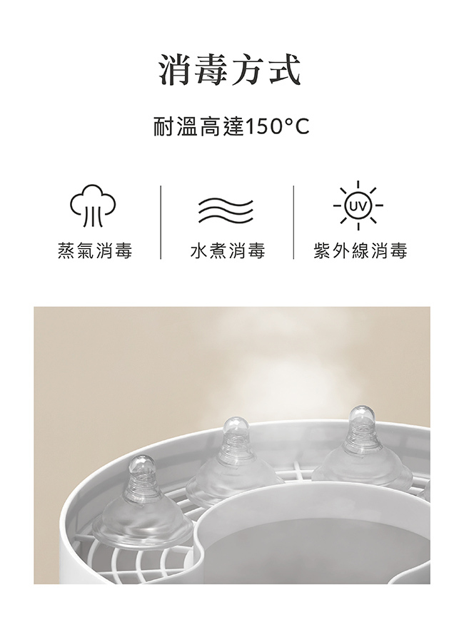 2. 欲使用蒸氣、紫外線、微波...等消毒器,請參照各廠牌消毒器使用說明書。