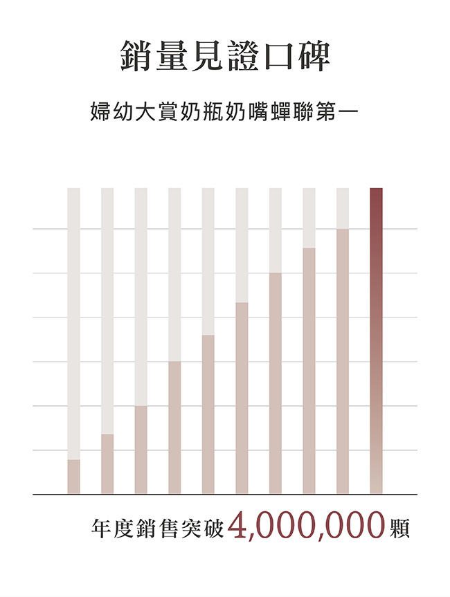 -高度還原母乳餵感,奶嘴黃金比例長度、柔軟觸感、模擬乳暈霧化設計。