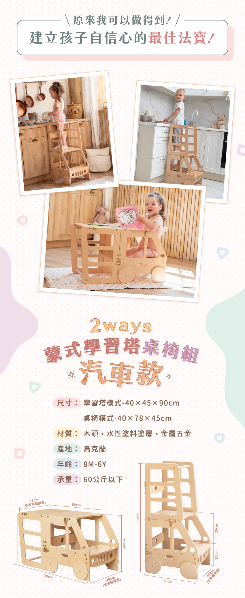 -2合1切換,輕鬆轉換為學習塔和桌子椅子