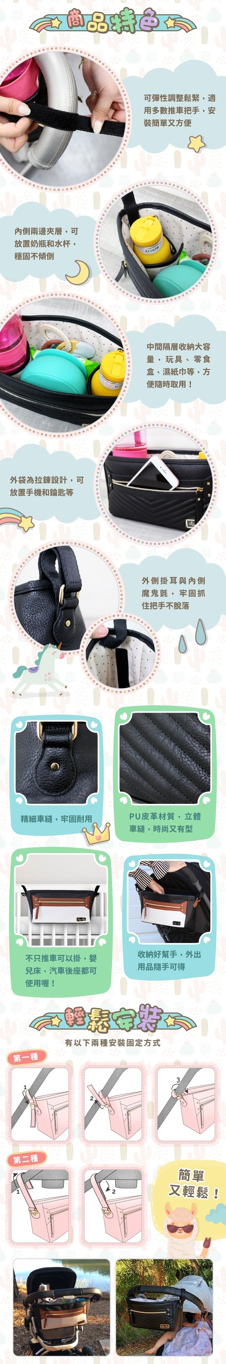• 可彈性鬆緊,適用多數推車把手,簡單又方便