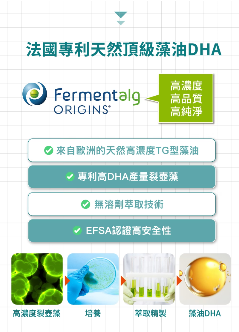 -本品使用法國頂級 Fermentalg®純淨藻油