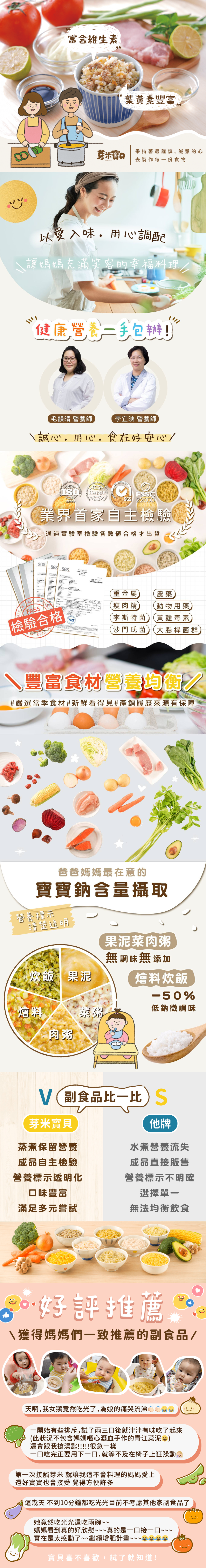 此餐點口感較略明顯顆粒感,請依寶寶吞嚥咀嚼能力適當調整,並放慢速度、小口餵食