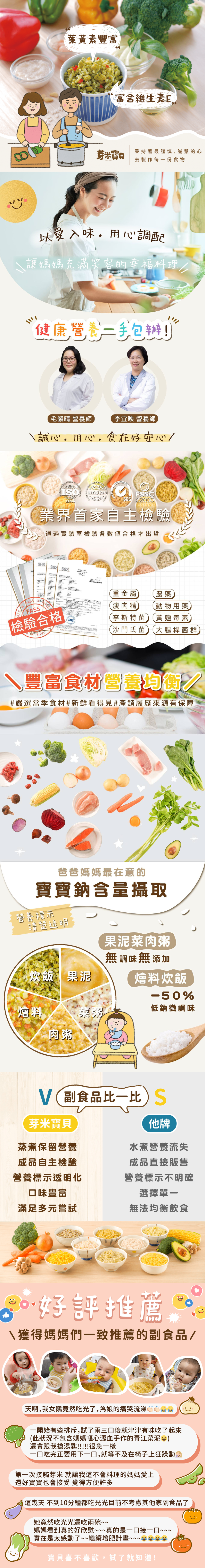 此餐點口感較略明顯顆粒感,請依寶寶吞嚥咀嚼能力適當調整,並放慢速度、小口餵食