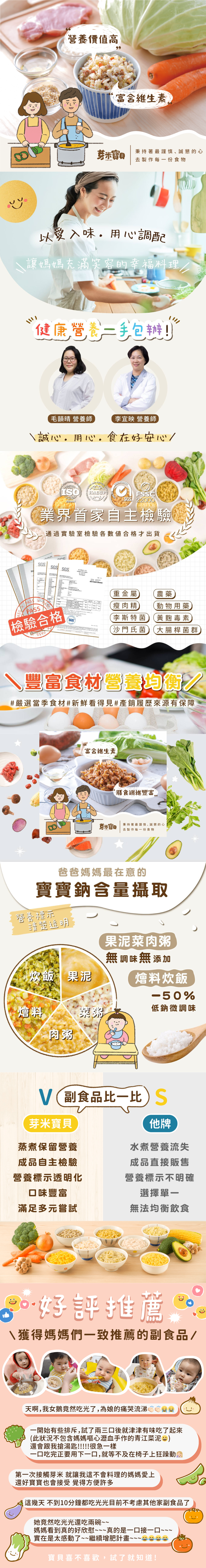 此餐點口感較略明顯顆粒感,請依寶寶吞嚥咀嚼能力適當調整,並放慢速度、小口餵食