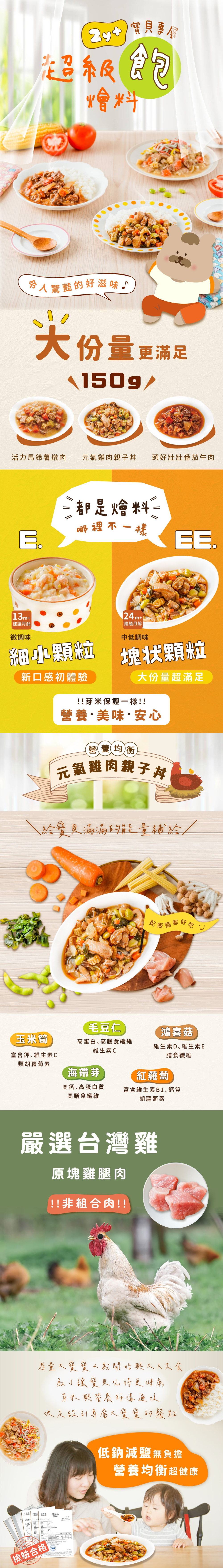 此餐點口感較略明顯顆粒感,請依寶寶吞嚥咀嚼能力適當調整,並放慢速度、小口餵食;產品一經解凍加熱後,請立即食用以保新鮮