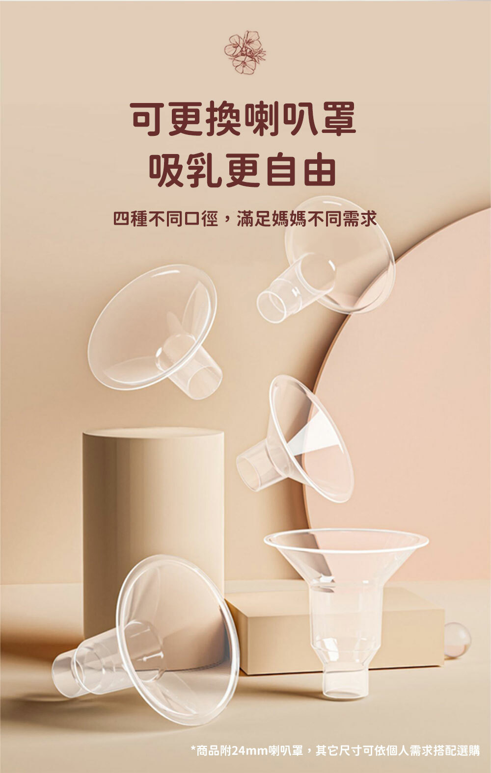 • 兩截式喇叭罩,轉換方便,吸乳更自由