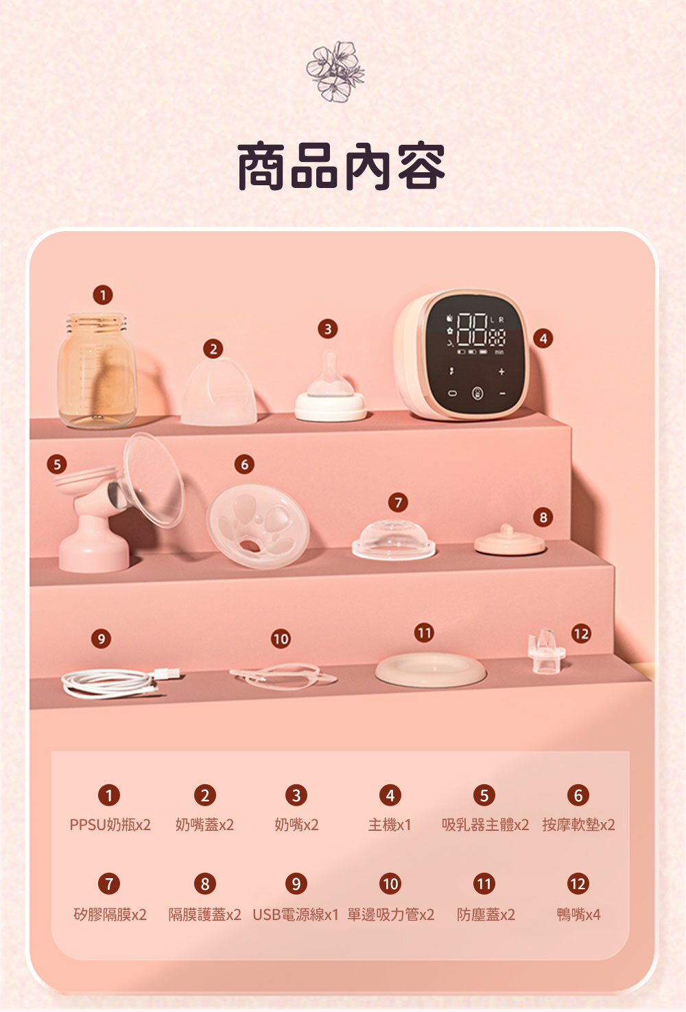 • 花瓣按摩墊,柔軟舒適,刺激乳汁自然分泌