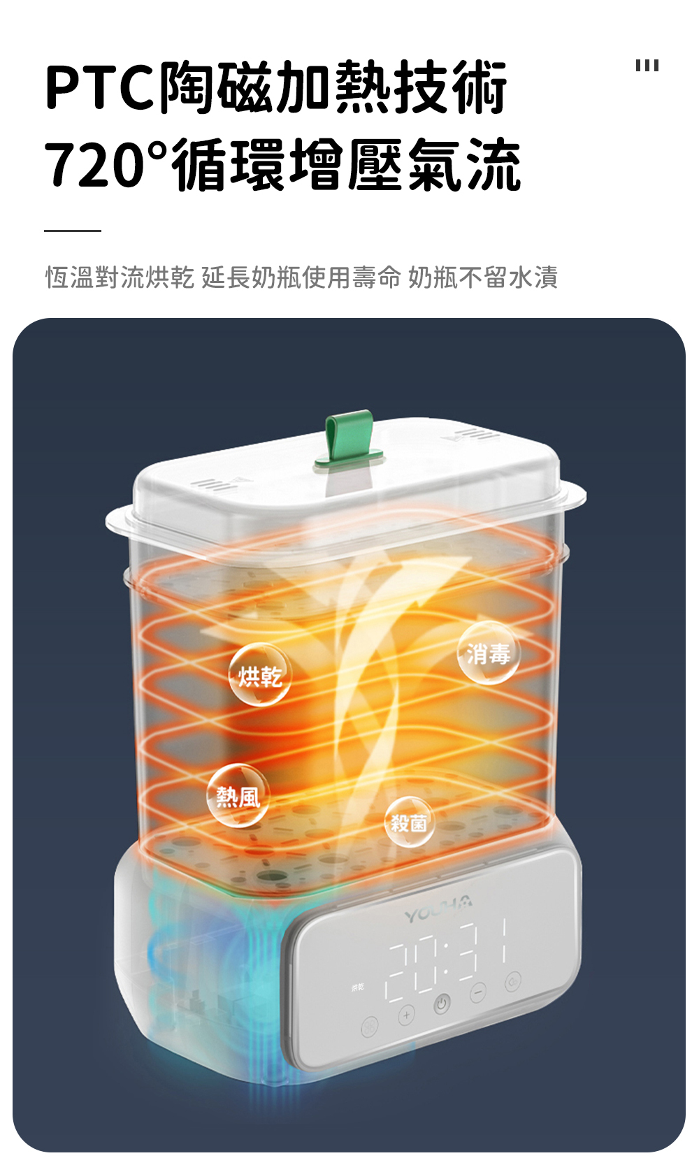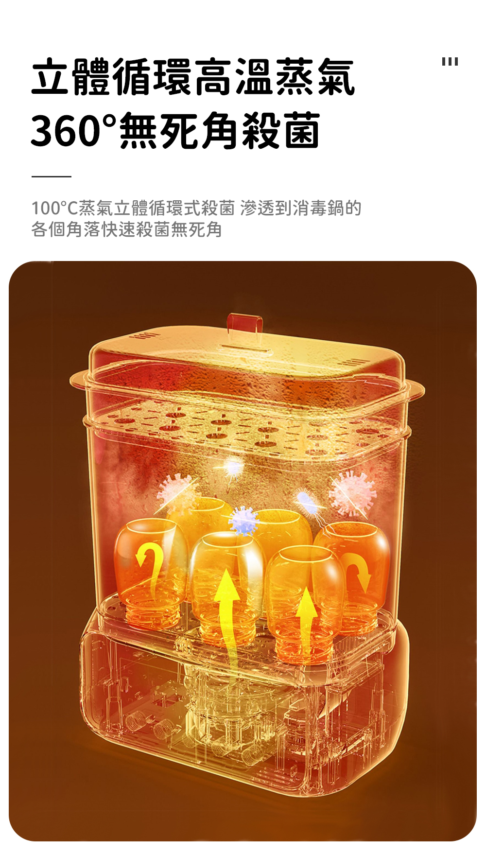-立體循環高溫蒸氣,360°無死角殺菌。