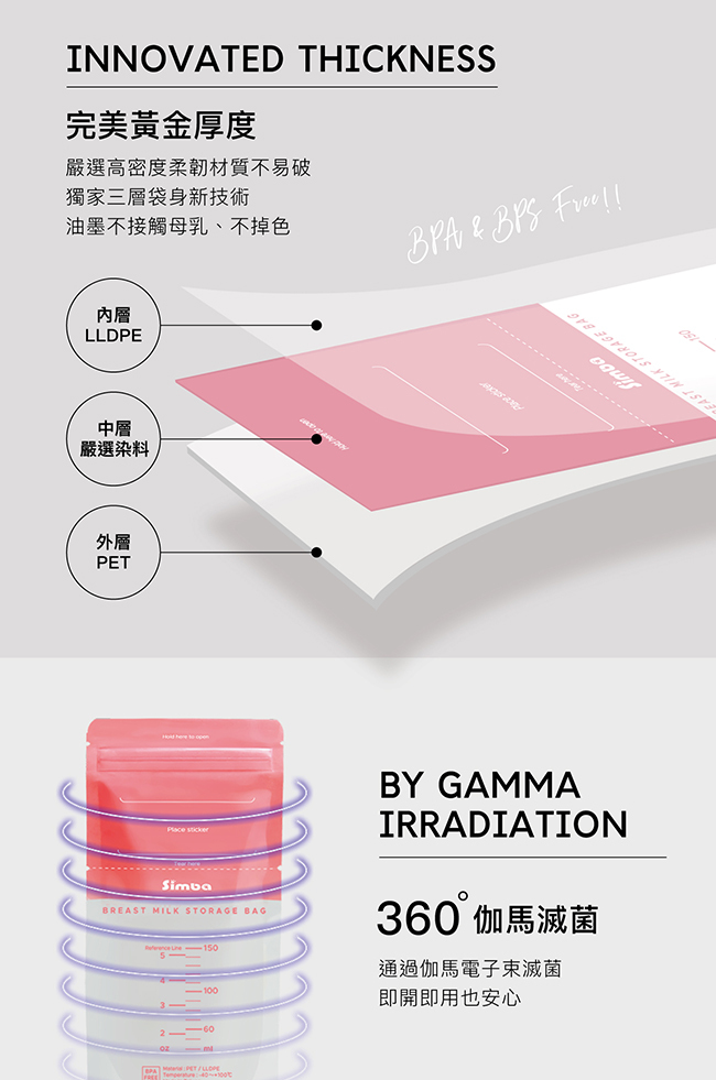 • 嚴選高密度柔韌材質更不易破,獨家三層袋身新技術,油墨不接觸母乳、不掉色。