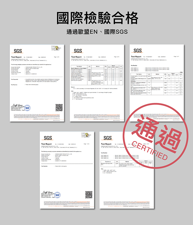 • 批批通過國際SGS檢驗,無雙酚A、無塑化劑、總生菌數合格、八大重金屬合格。
