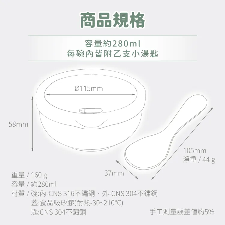 -碗內皆附一支304不鏽鋼彩色圖案湯匙(彩色圖案湯匙不可雷射)