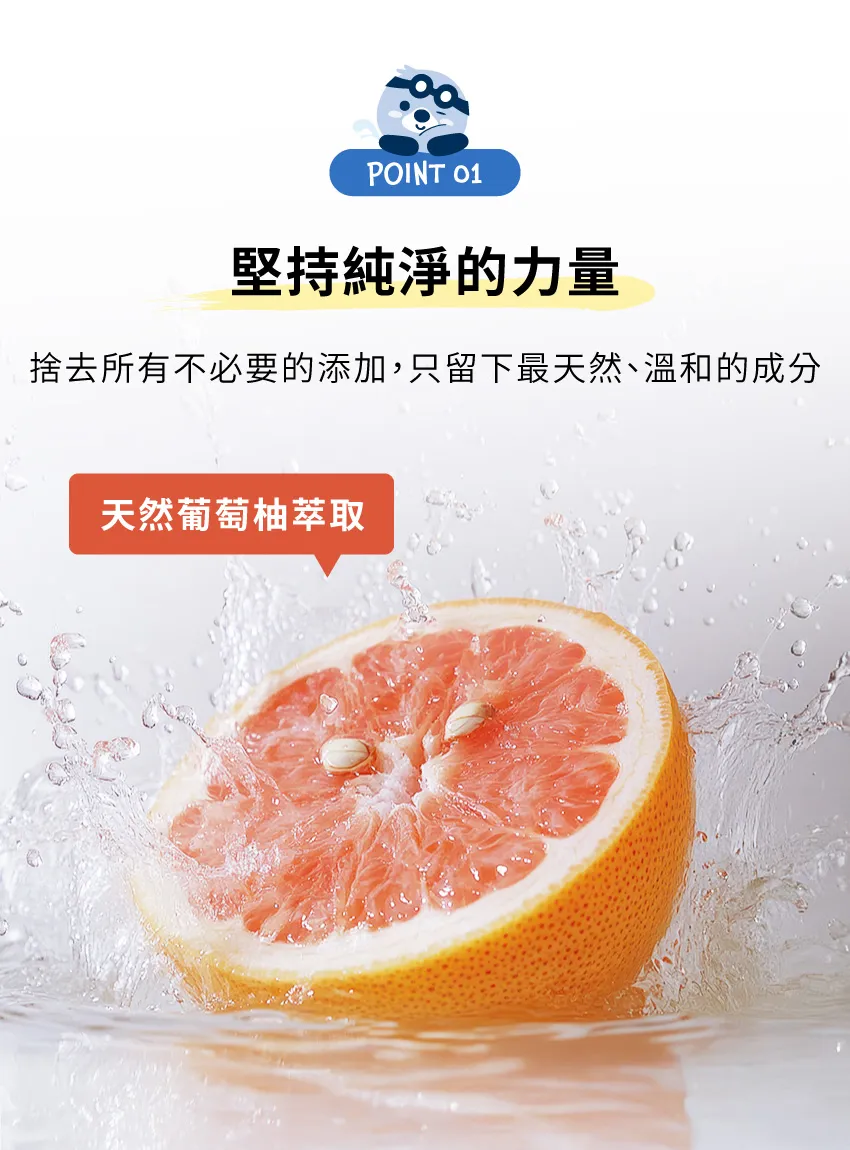 成分:純水、葡萄柚籽萃取、苯札氯胺