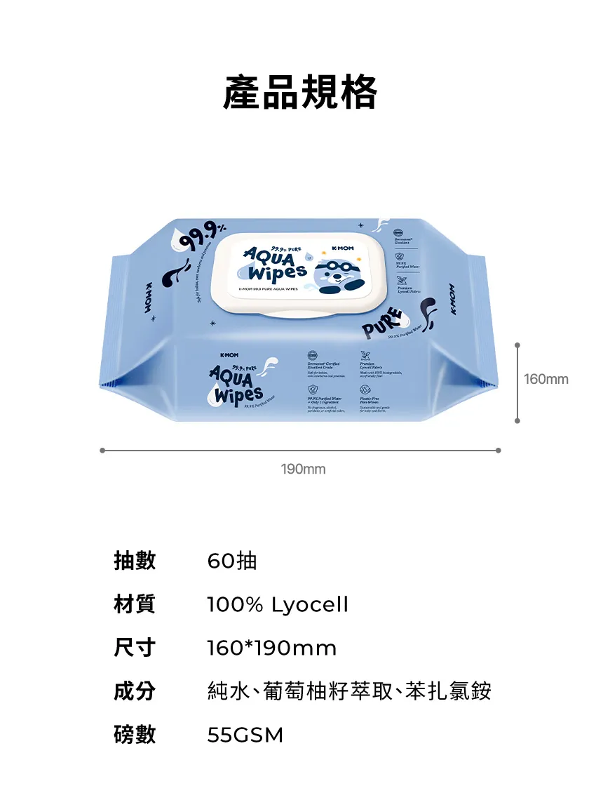韓國 Mother-K Aqua 真純水濕紙巾60抽 (12包/箱)