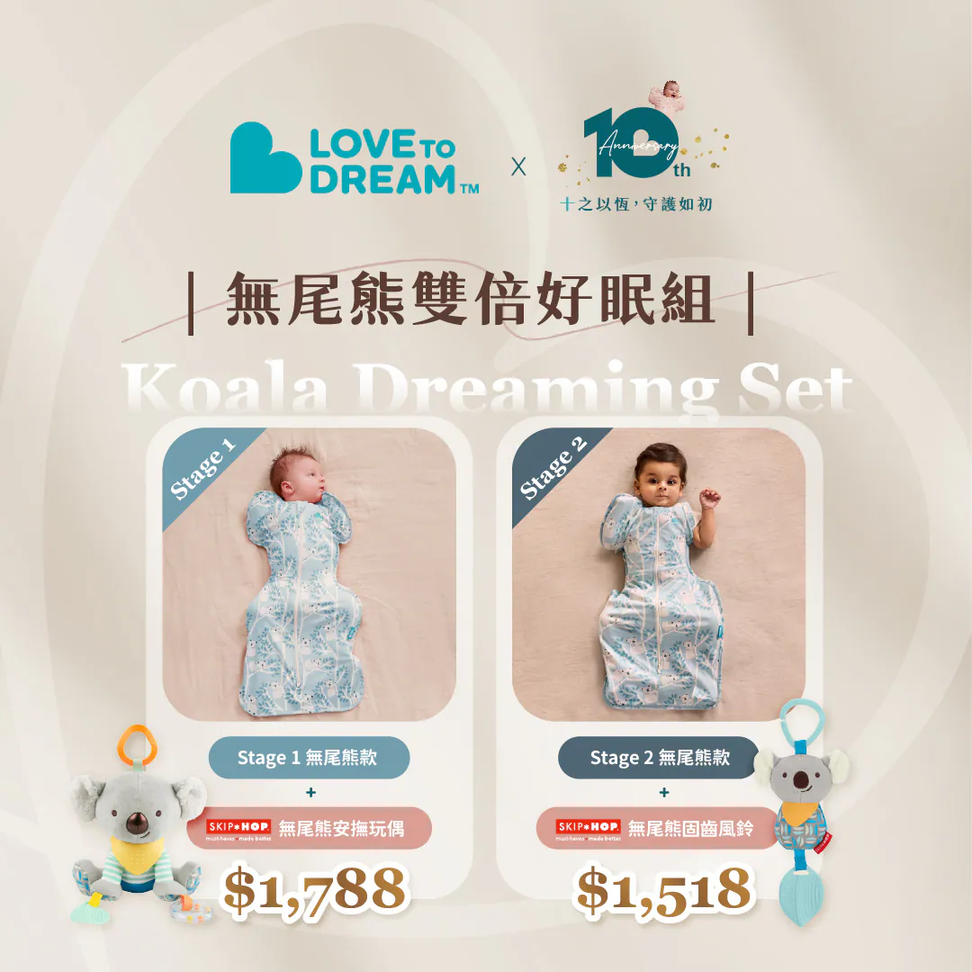 組合內含: STAGE2 可拆袖基本款限量無尾熊花色+ SKIP HOP 無尾熊固齒風鈴玩具