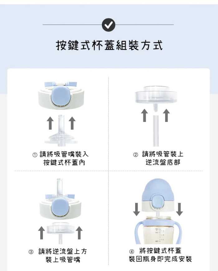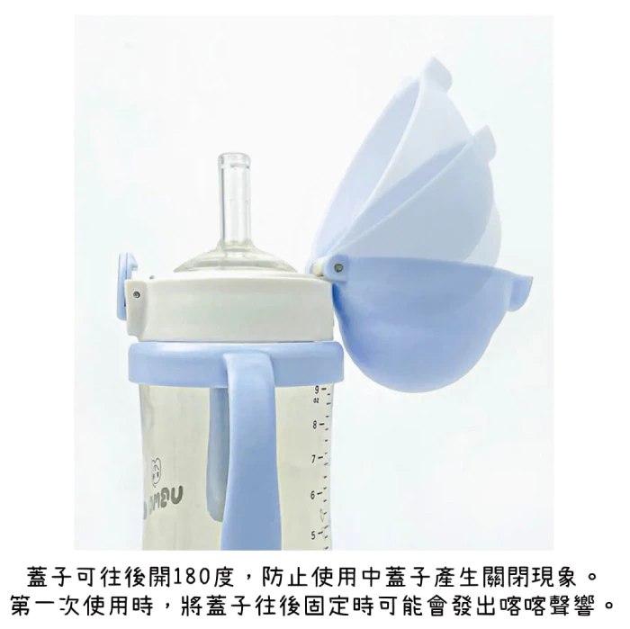 • 按壓式杯蓋可以開到180度 寶貝喝水時不會打到臉