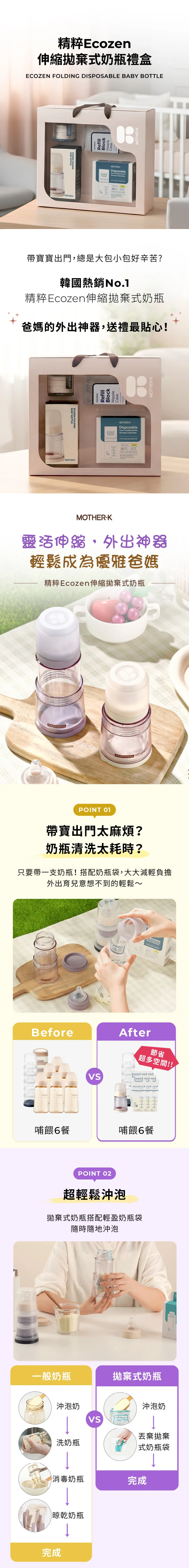 1. 精粹Ecozen伸縮拋棄式奶瓶(無附奶嘴頭)