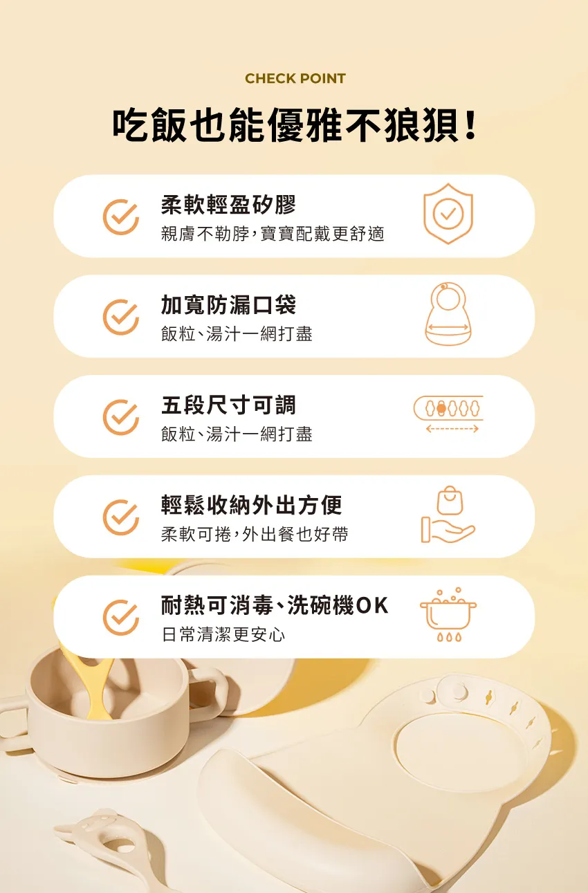 .加寬防漏口袋|飯粒、湯汁一網打盡