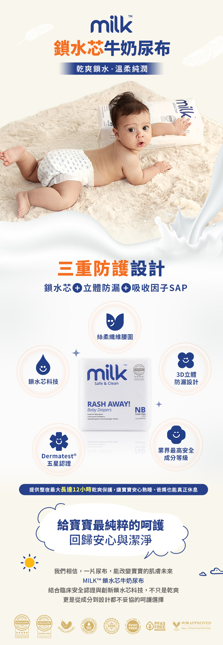 -獲得德國Dermatest®五星認證,適用於敏感肌膚寶寶